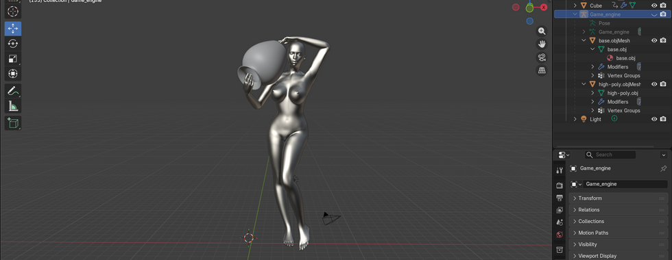 Afterward, I played around with the vase measurement until I'm happy and placed the vase on the statue shoulder. Had to move her arms and neck around a bit as well.